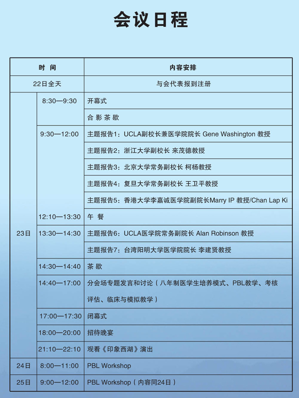五、 参会人员:政府医学教育主管部门,高校主管医学教育的领导、主管医学教育的院长、教务部门领导以及院系和附属医院的教学骨干、教学管理和研究的相关人员。