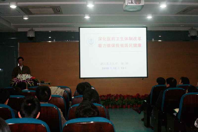 仪式结束后,杨敬教授为师生们带来了题为“深化医药卫生体制改革,着力维保我省居民健康”的学术报告。他深刻分析了当前浙江省医药卫生体制改革所面临的主要问题,对我省医改今后的发展方向进行了重点阐述。报告数据翔实,论证有力,深入浅出,受到在座师生的一致好评。