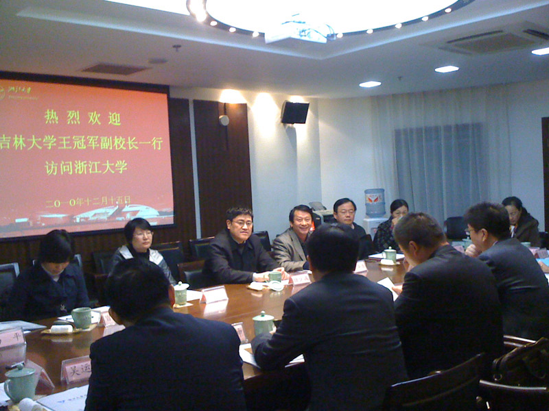2010年12月9日,吉林大学王冠军副校长一行8人访问浙江大学和浙江大学医学部,就十二五医学事业发展规划的制定工作进行了考察调研。学校党委副书记任少波、医学部书记陈智、医学部副主任沈华浩、医学部副书记张小玲以及医学部各相关办公室领导参加了会谈。