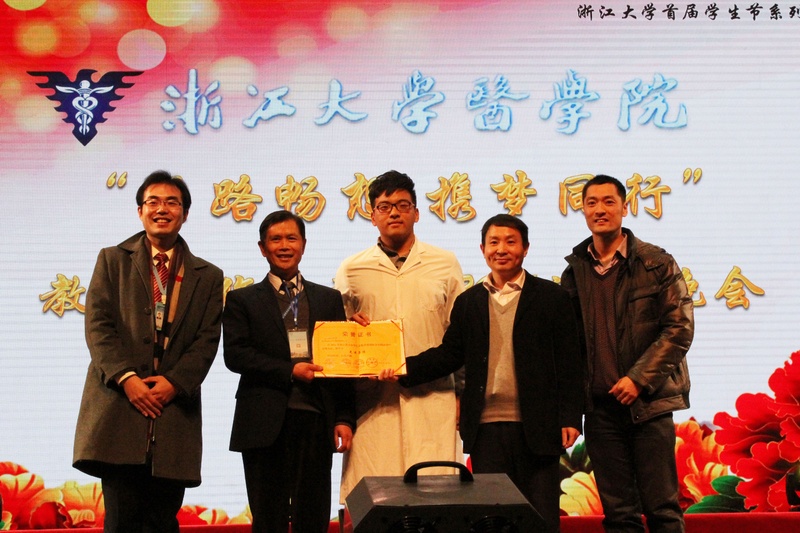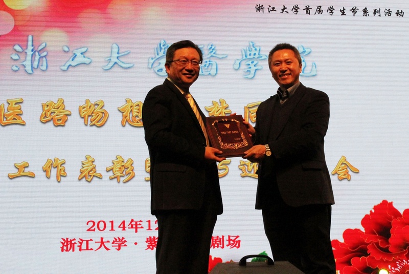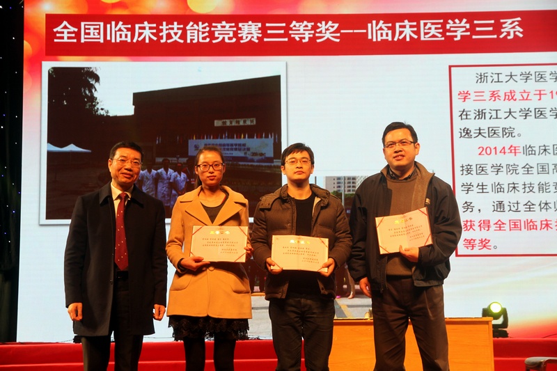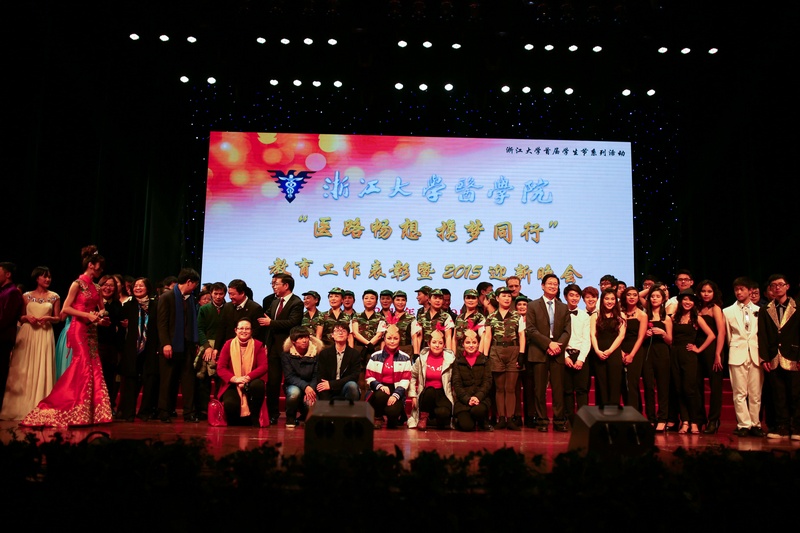 2014年12月29日,“医路畅想、携梦同行”——医学院教育工作表彰暨2015迎新晚会于紫金港小剧场隆重举行。本次晚会是浙江大学首届学生节重要内容之一,也是医学院表彰先进、喜迎新年的重要活动。莅临晚会的嘉宾有浙江大学副校长罗建红,校党委学工部副部长陈君芳,校党委研工部副部长徐国斌,校团委副书记朱佐想等。医学院院长段树民,常务副院长陈智,党委书记黄河,副院长许正平、郑树森、蔡秀军、方向明、李晓明,党委副书记陈国忠、叶旭军,以及吴弘萍、杜立中、胡济安等系、附属医院的领导,与医学院的老师和同学们一起,见证这欢乐的时刻。