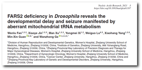 戈万忠/管敏鑫课题组《Nucleic Acids Research》发文揭示 FARS2基因缺陷导致发育迟缓及癫痫发生的分子机制